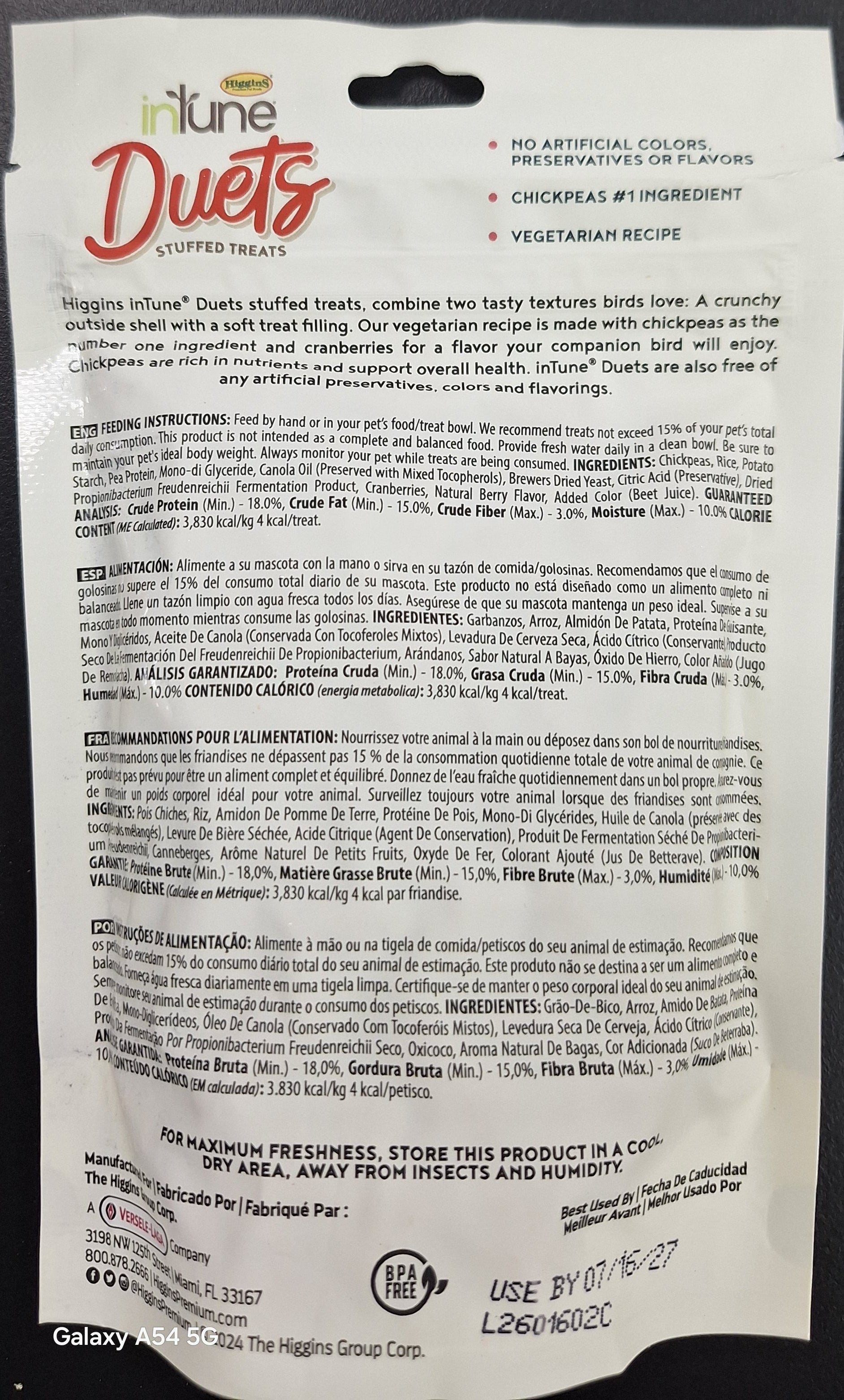 Great for Conures,lovebirds & similar size birds. Duet has a Crunchy shell with a soft center and are free of any artificial preservatives, colors and flavorings