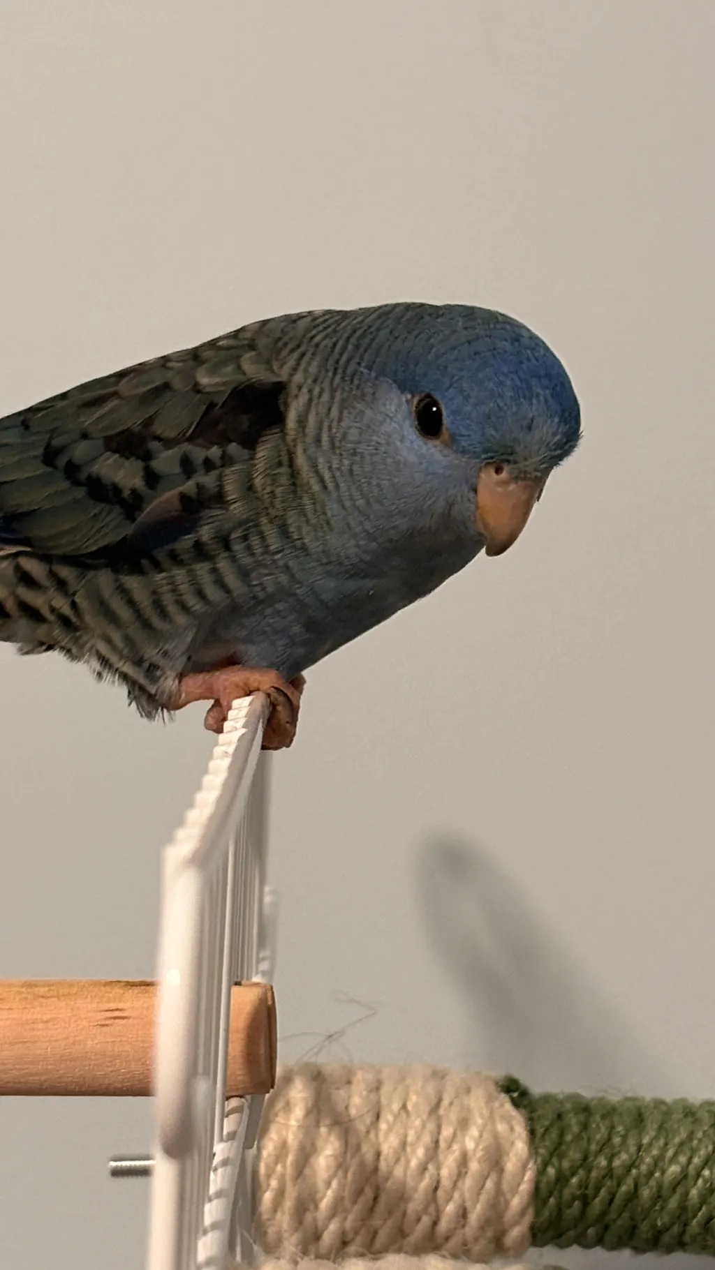 The barred parakeet (Bolborhynchus lineola), also known as the lineolated parakeet or "linnie," is a small, quiet, and calm parrot from the highland forests of tropical Latin America, popular as a pet due to its gentle nature and unique horizontal posture. They are mostly green with dark barring, enjoy water, and are known for their soft, mumble-like vocalizations, making them a good choice for those seeking a less noisy companion bird.